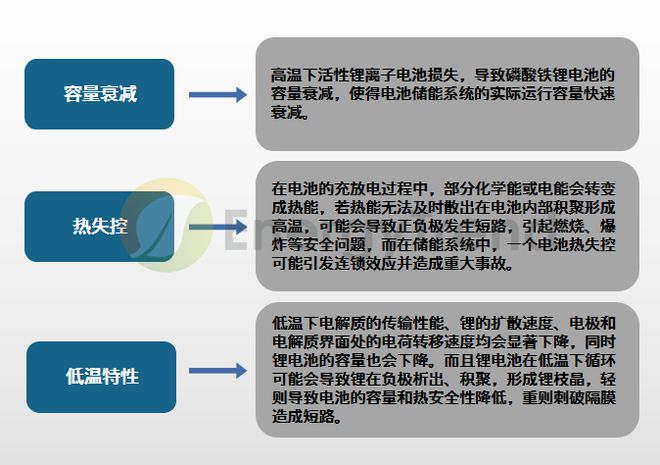 圖:溫度對儲能系統(tǒng)中鋰電池性能影響情況